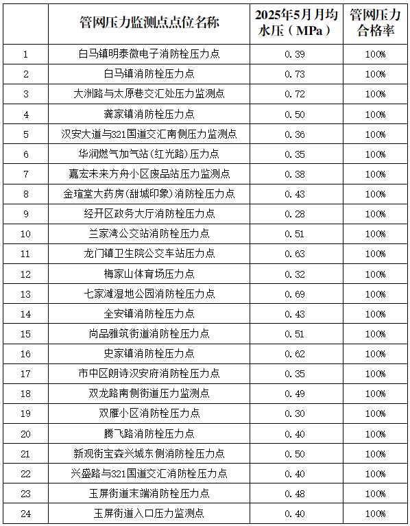 內(nèi)江市水務(wù)有限責(zé)任公司2025年5月管網(wǎng)壓力月報